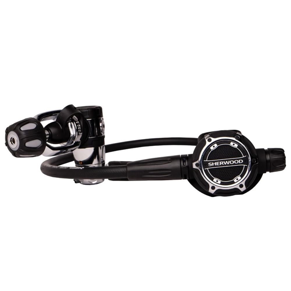The SR2 regulator continues the legacy the SR1 created. It packs advanced technology into a compact case, employing contemporary styling and utilizing a multitude of cutting-edge materials. The SR2 is the ONLY Flow Through Piston Regulator that is both environmentally sealed and internally dry, and still offers a depth compensation mechanism. This is no easy task to achieve. Sherwood’s Three Pin Link (3PL) transfers the environmental pressure to the piston and provides consistent flow at any depth.